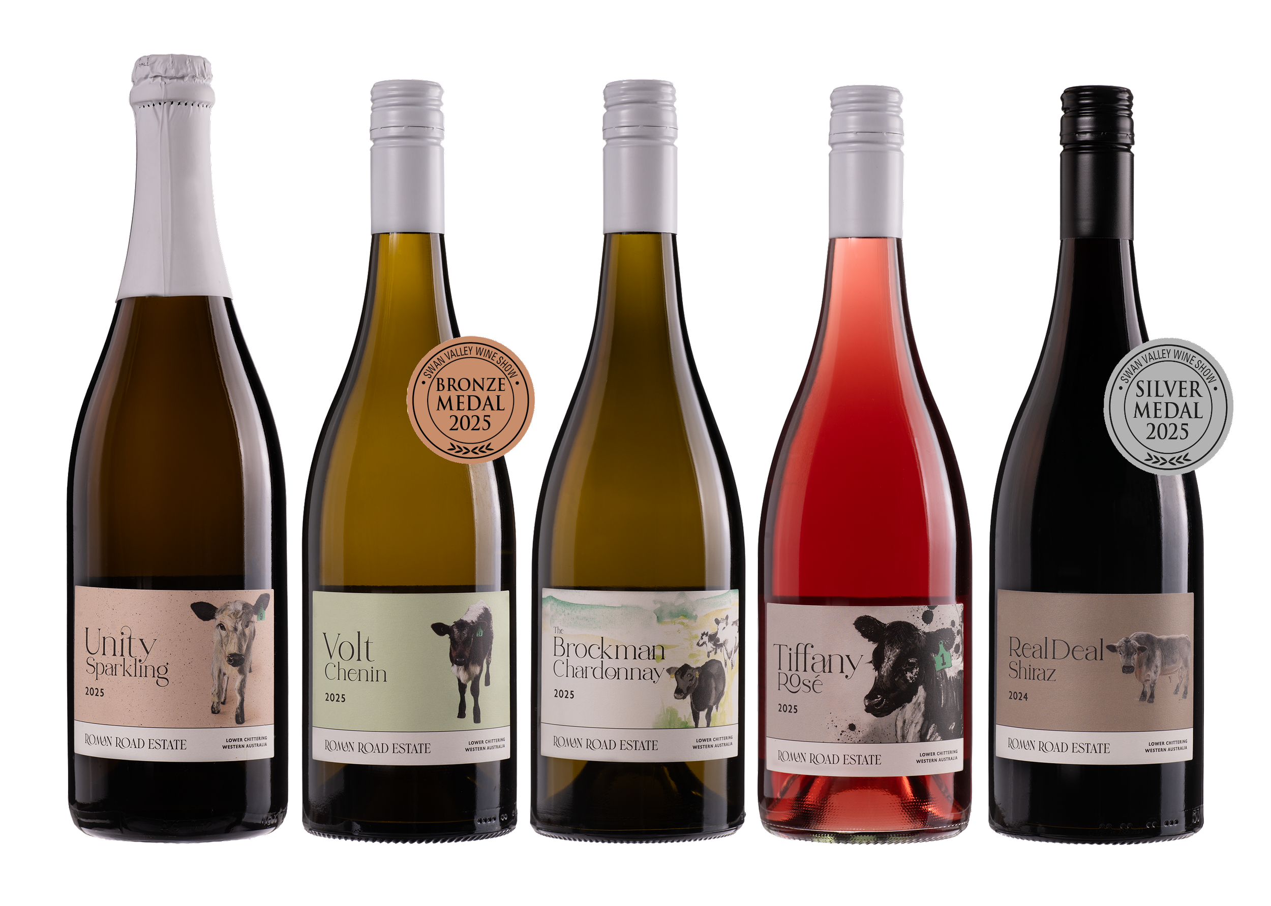 The Unity Sparkling 2025 is produced from chenin blanc and chardonnay vines grown at our Brockman Park Estate. As this Sparkling is a joyous coupling of two grape varieties, it is aptly named after our stud heifer Unity (U9) who received her name as she was born on the day Roman Road’s owners were married in 2023.