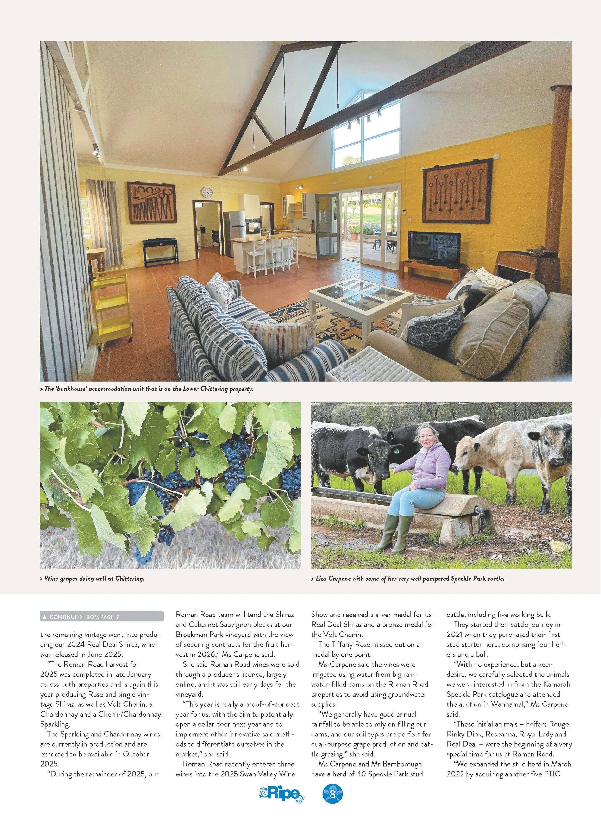 The Team at Roman Road was delighted to be featured in the September 2025 issue of the Ripe Magazine produced by Farm Weekly, showcasing our wine ventures and Speckle Park cattle stud in Lower Chittering.